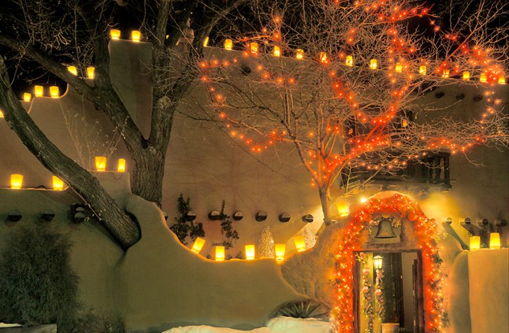 The air is crisp and cold as you step out into the Santa Fe evening. Strings of hanging lights add a romantic glow to the trees and adobe buildings, some as old as 400 years, surrounding the city’s historic district. But it’s the signature farolitos lining the sidewalks and buildings, brightening the Plaza, that signal the holiday season. Just don’t call the brown-bagged votives luminarias if you want to try to appear local. The sound of Christmas carols drifts in from the Cathedral Basilica of St. Francis of Assisi, and people scurry by bundled in coats and hats. Yes, you’ve come south, but don’t forget that Santa Fe sits at 7,199 feet in the foothills of the Sangre de Cristo Mountains.